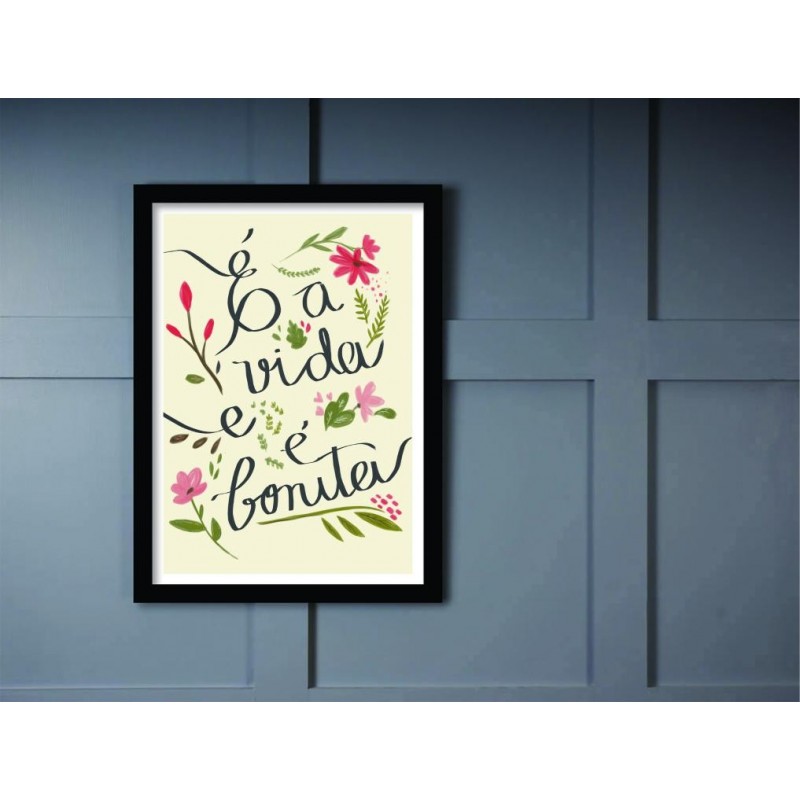 Poster em impressão digital HighHD de alta definição em papel 230g semi-glossy emoldurado em madeira pintada em laka com acrílico de 2mm.